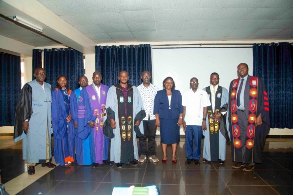 Dr. Drake Mirembe in a group photo after a successful PhD defense by Dr. Lilian Tamale